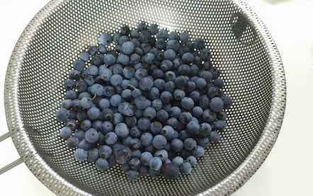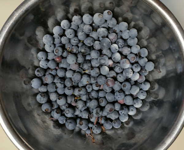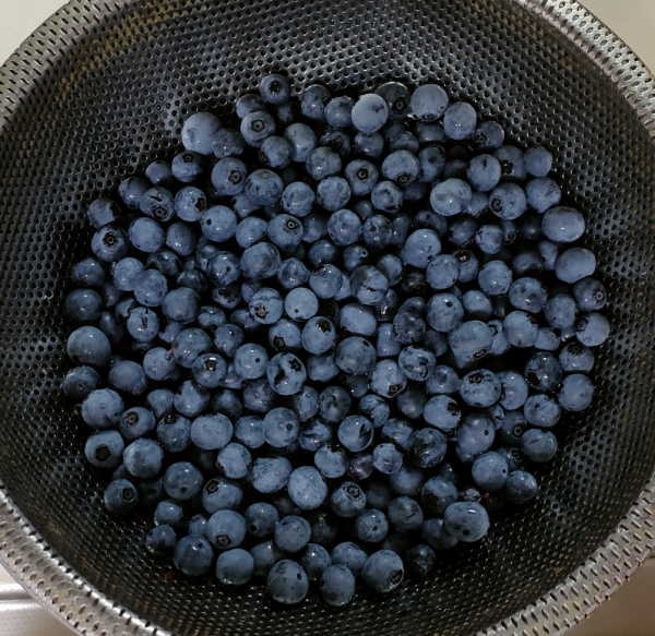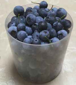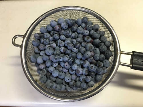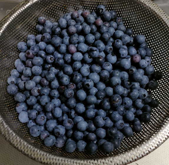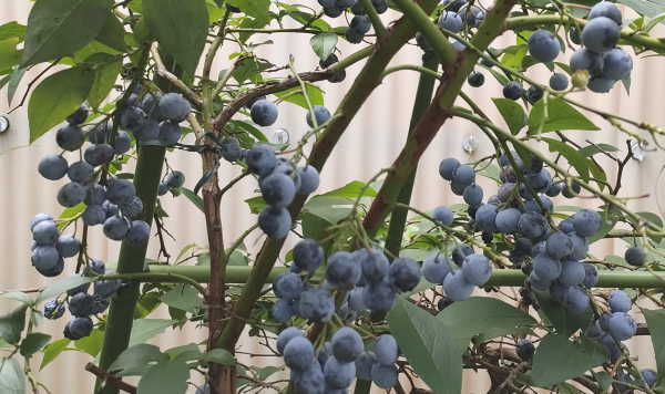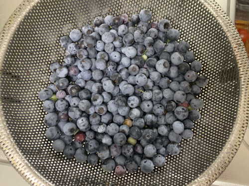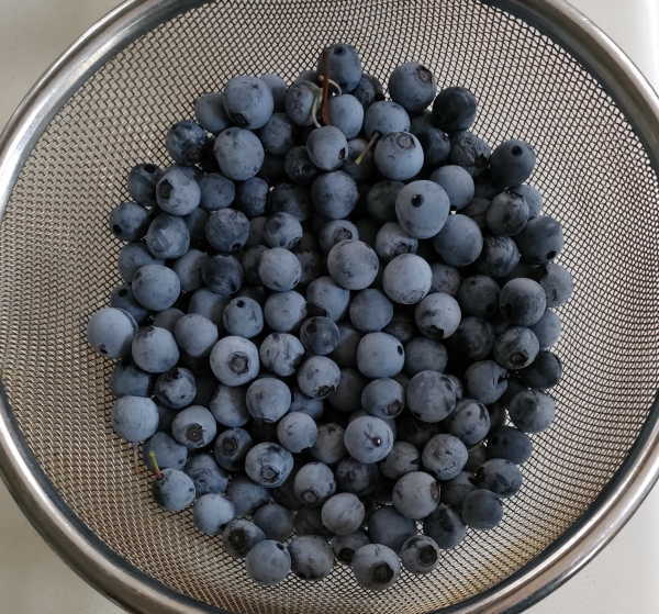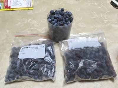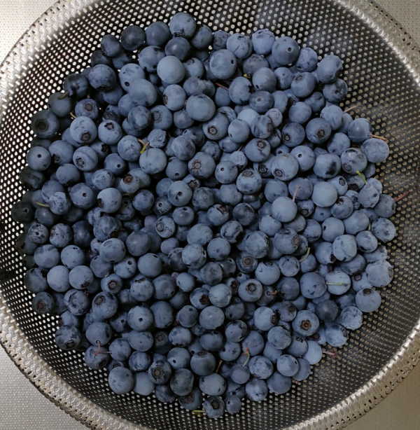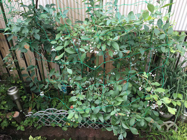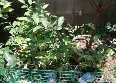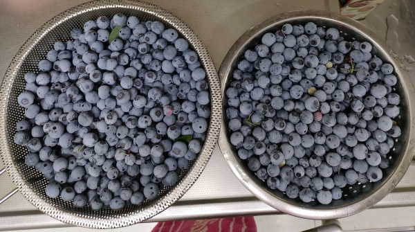熟れた実が落ち出したので、ネットの端の手が届きやすい「ティフブルー」の一部を収穫して来ました。