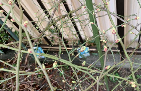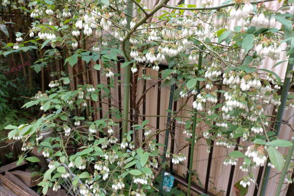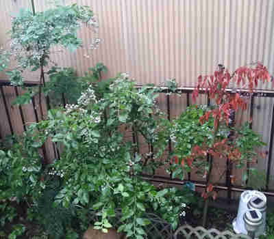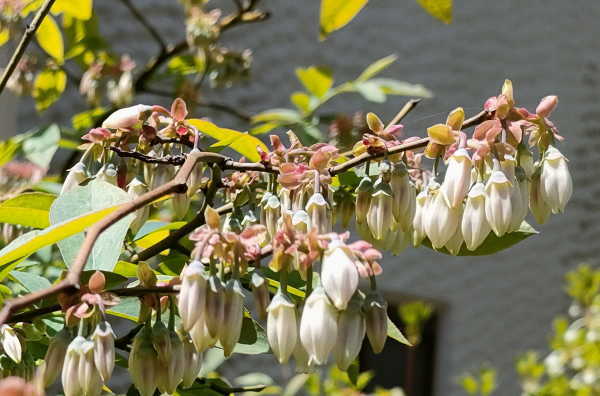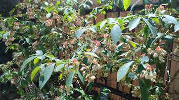 剪定したので、今年は花数が少し少なっていますが、ミツバチが飛び回っています。