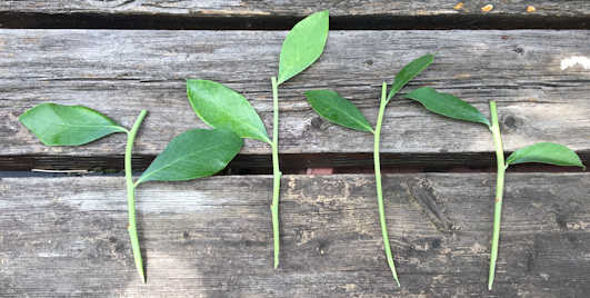 果軸(へた)の付け根部分(接触箇所)が少し青く着色しているのが完熟のサイン。