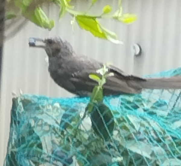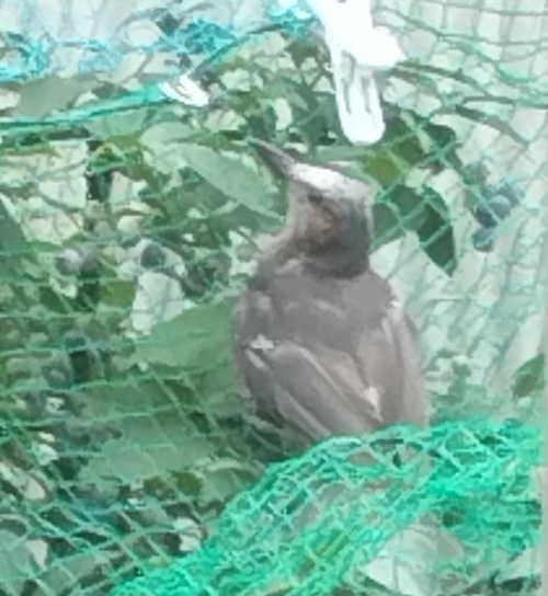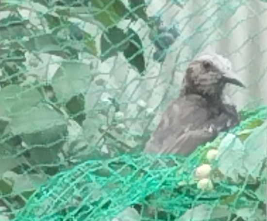 ネットを設置しても、いつもの鳥がネットの上から実をついばんでいます。