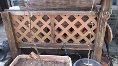 - 「ゴールデンキング」(メス)と「ロッキー」(オス)の苗を鉢植え