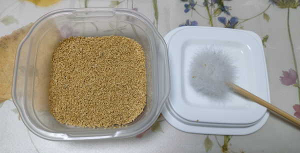 この状態で半日ほど部屋に放置して少し乾燥させてから、紙に包んで乾燥剤と一緒に冷凍庫で保管します。