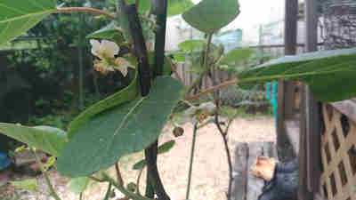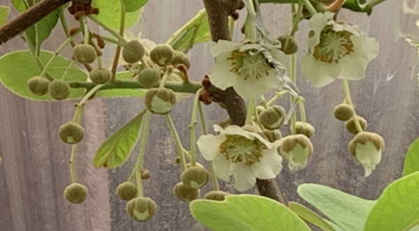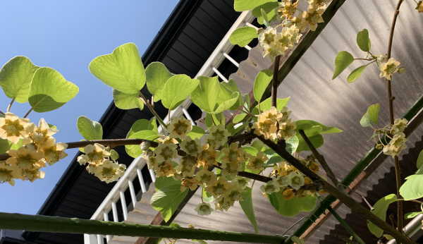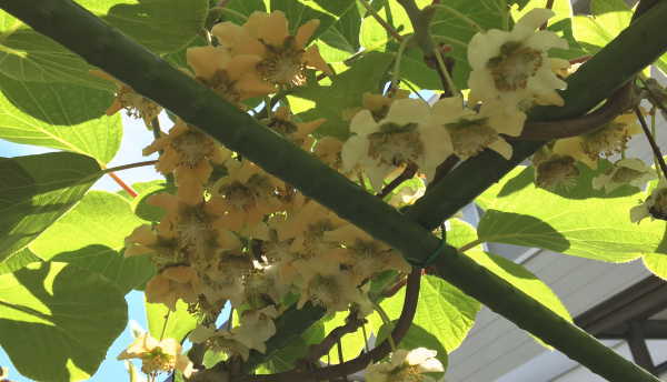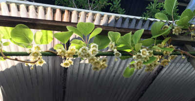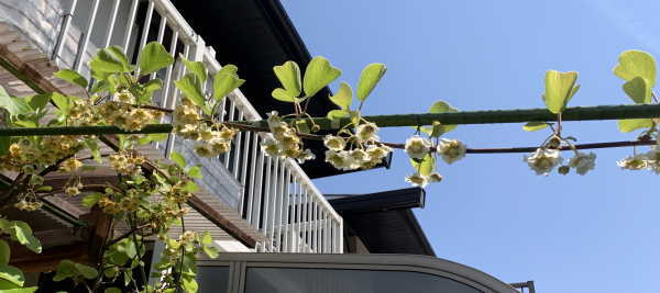 - キウイの花が咲き始めましたので人工授粉開始