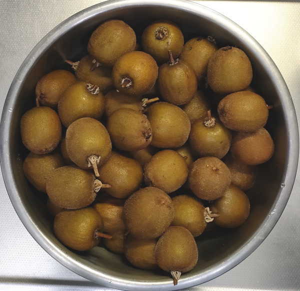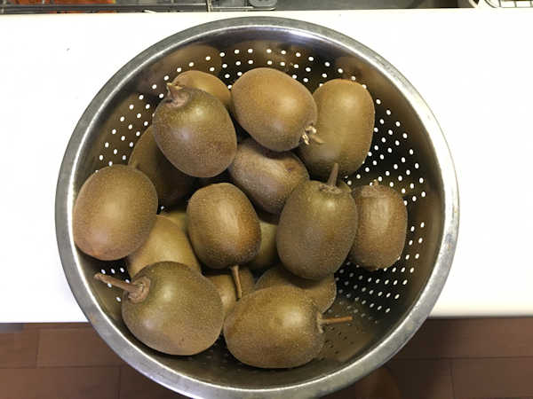 先日収穫したキウイを4つのジブロックの袋に分けて保存。