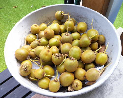- キウイは生理落果がほとんど無く、去年実をつけ過ぎたせいで隔年結果となった