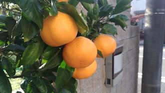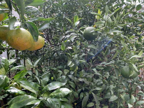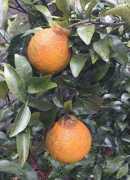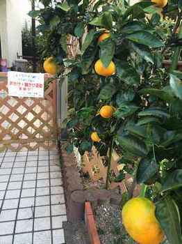 - デコポンにはたくさんの実が残っていますが、玄関脇の興津早生の実は半減