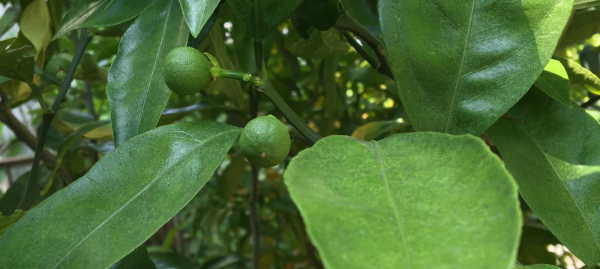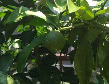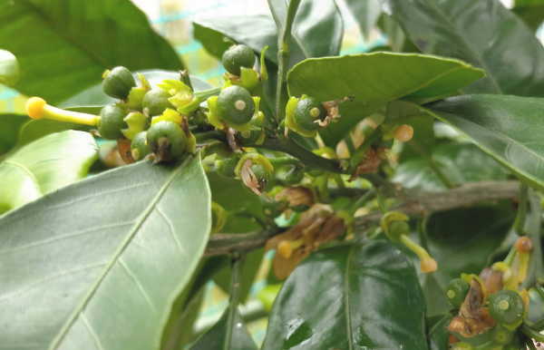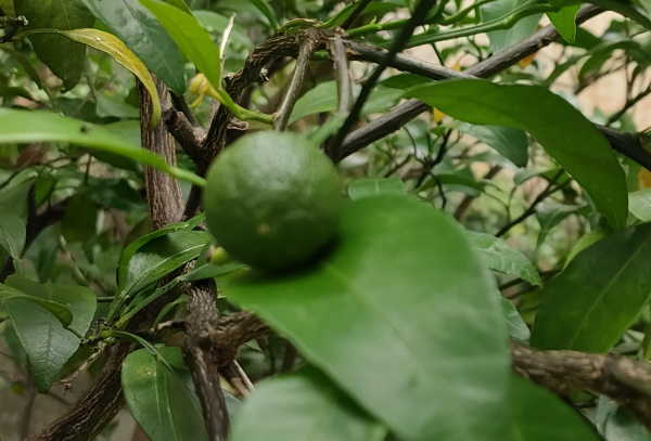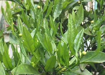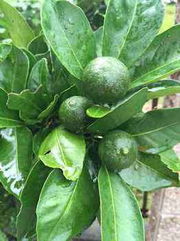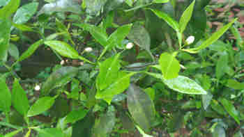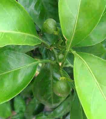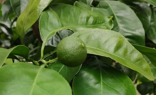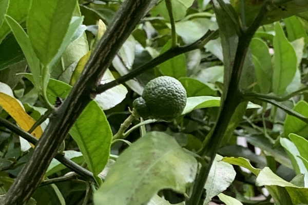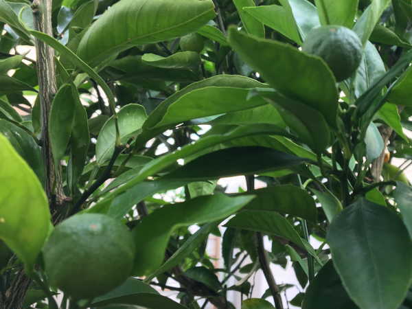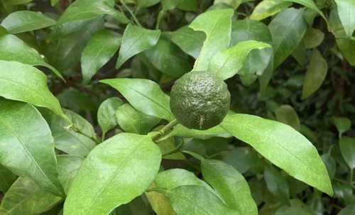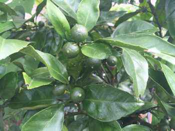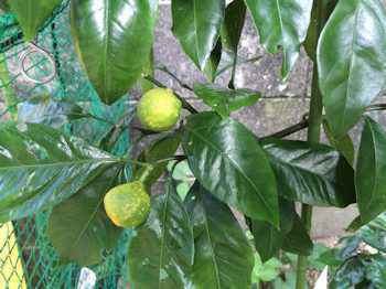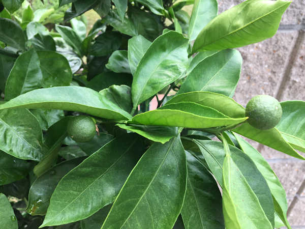 裏庭の「デコポン」にも少し実がついています。「興津早生」より一回り小さい。