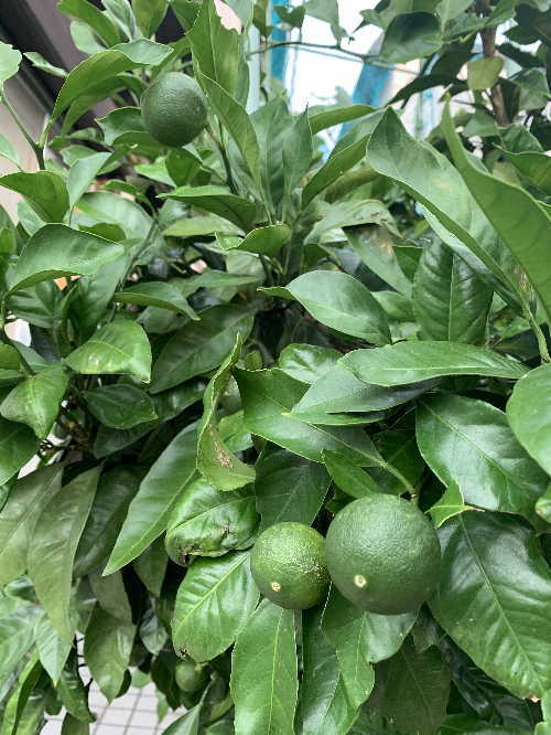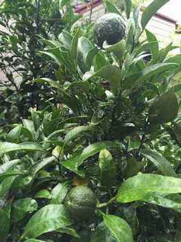 裏の「デコポン」も春に思いっきり剪定したので、実の数は少なく数個だと思っていましたが、大きな実が15個前後ついています。
