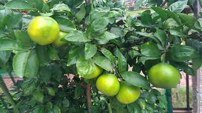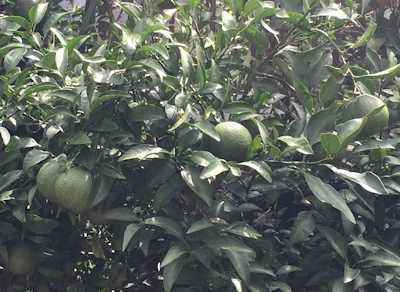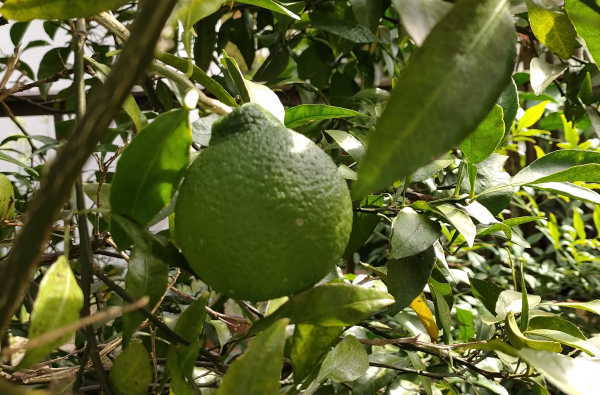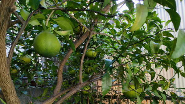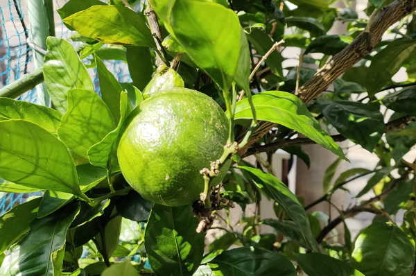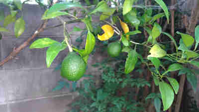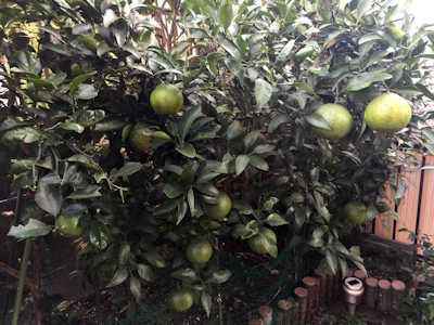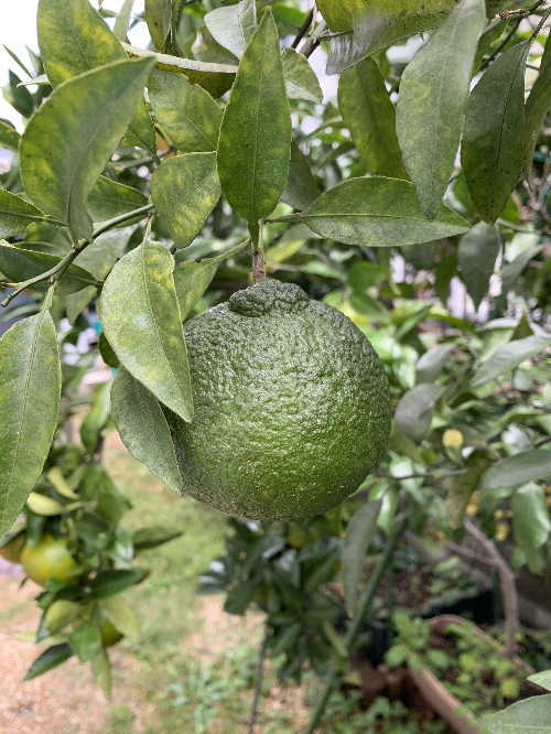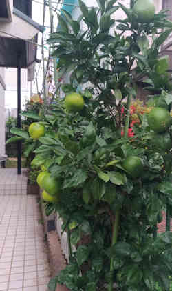 裏庭の植木升のデコポン「しらぬい」の実が今年は20個弱ついていたが、5~6個試し採りをしてもまだ酸っぱく甘みが少ないので、まだ収穫しないことにした。