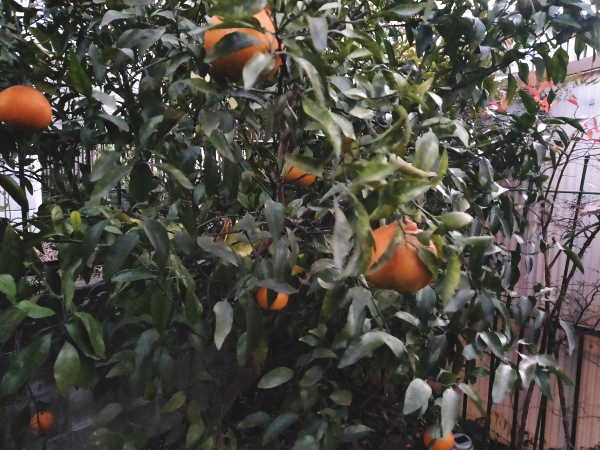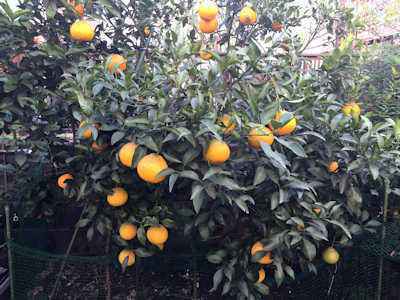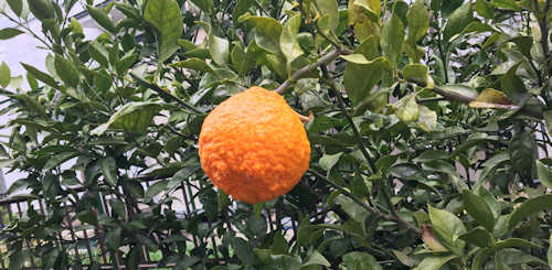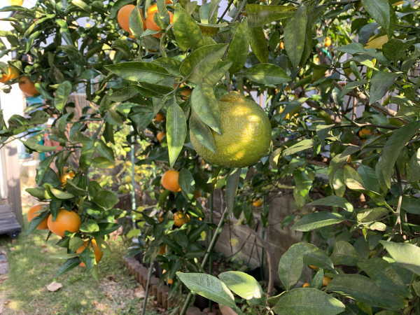 裏庭の「興津早生」の隣のデコポン「しらぬい」は実がわずかと思っていましたが、色付くと思った以上になっていました。こちらの収穫は3月頃になると思います。