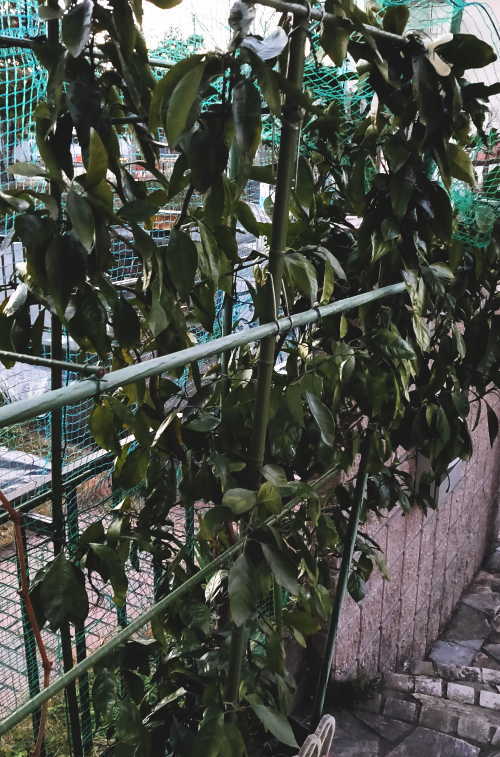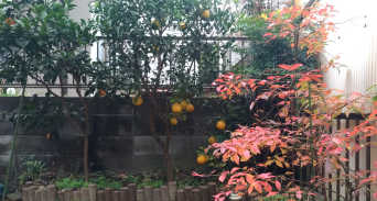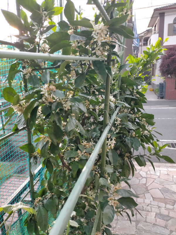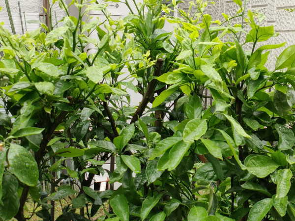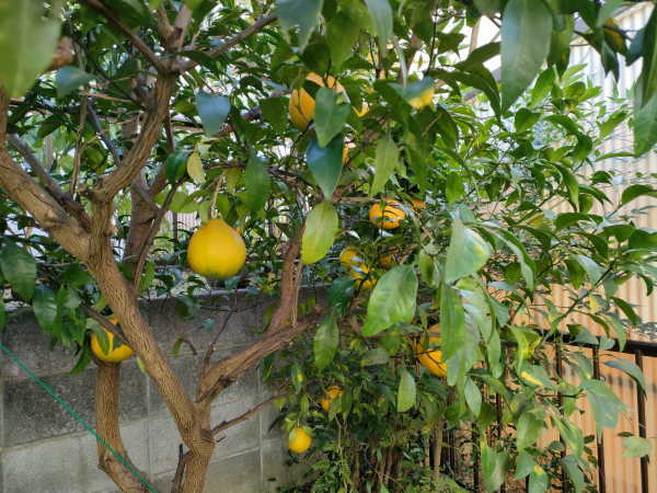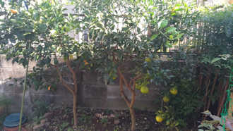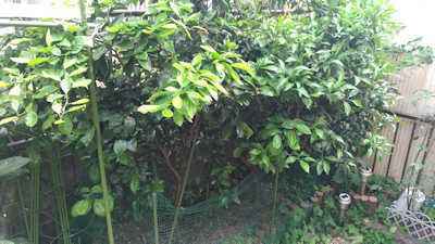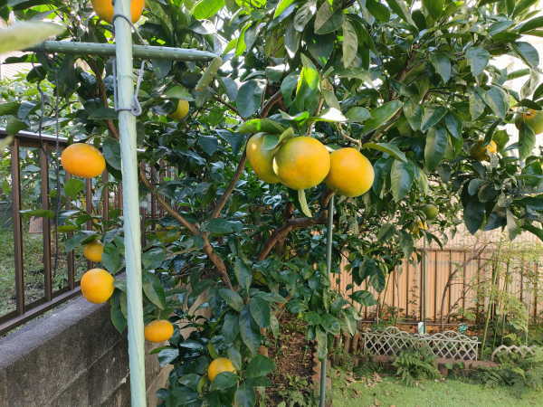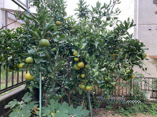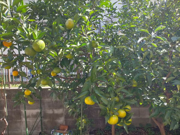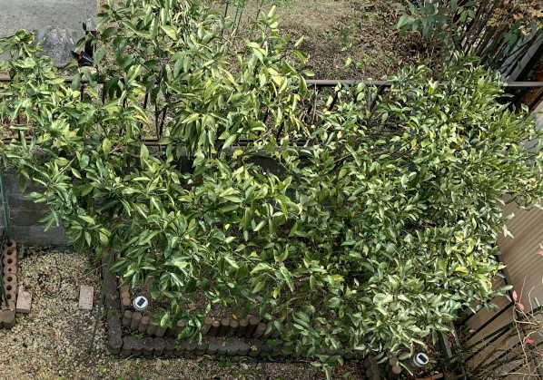 - 裏庭のみかんとデコポンの木が大きくなり横幅は限界