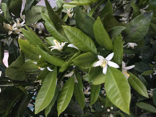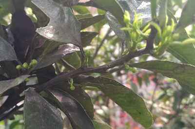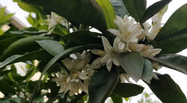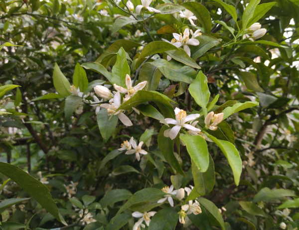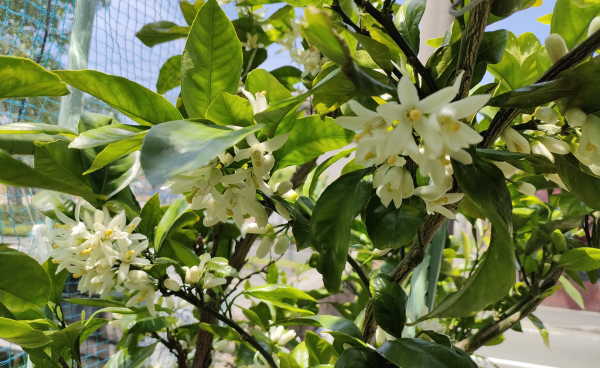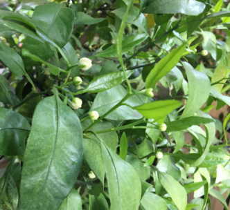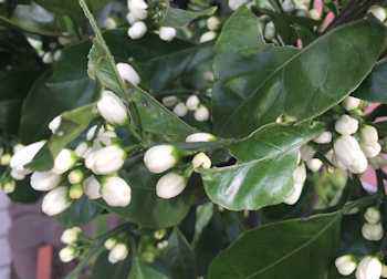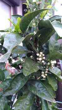 玄関横のミカンには殆どの枝に蕾がついており数百個あると思われます。