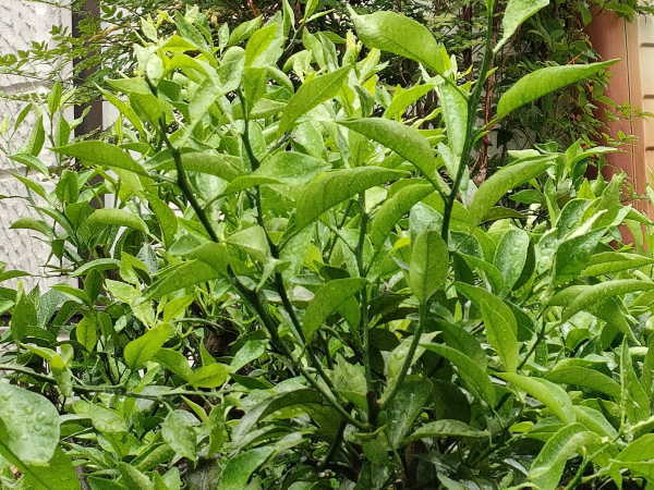デコポンとミカンに新芽が出ていますが、新芽の量はデコポンの方がかなり多い。