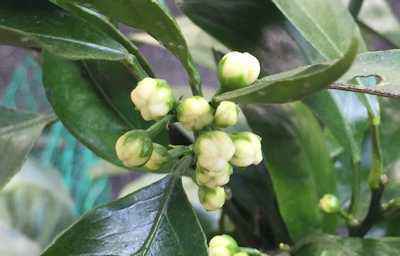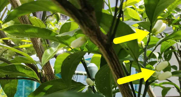 - みかん(興津早生)のつぼみが白く大きくなりもうすぐ咲きそうです