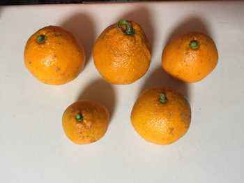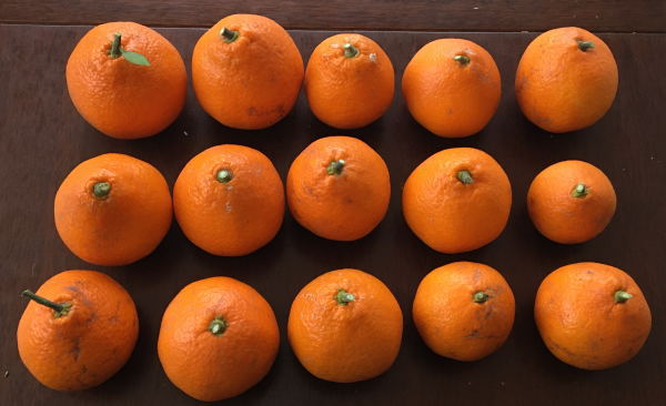 大きいのは直径8cm位ありましたが、小さいのはミカンの標準サイズ位。
