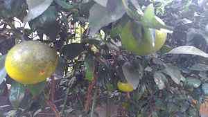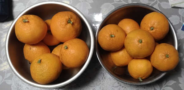 表のミカンは数量が多かったが、裏庭のミカンは数が少ないが実が大きくずっしりとしていました。
