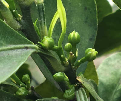 - 今年はみかん(興津早生)につぼみを見つけたが、デコポンにはまだない