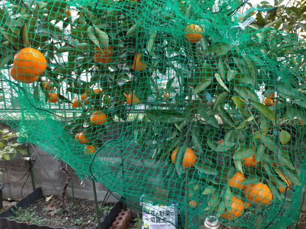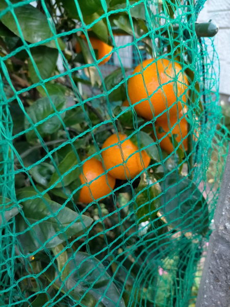 ぶどうに掛けていたネットを外し、みかんに掛けました。