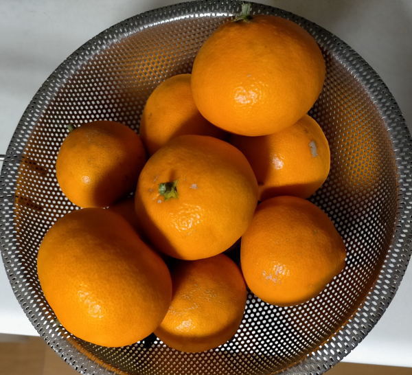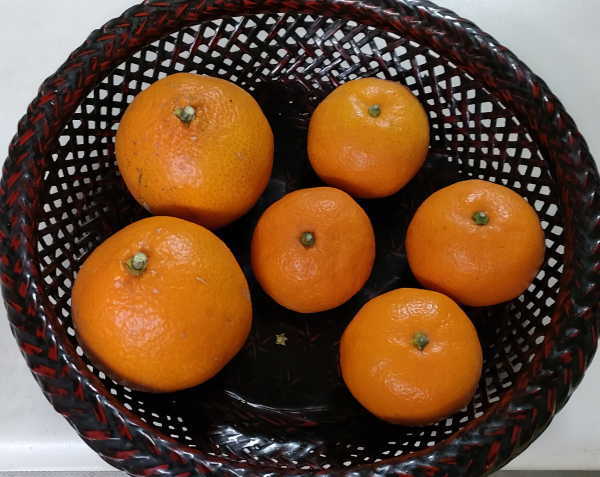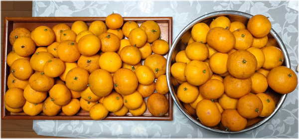 裏庭の植木升のミカン「興津早生」を全て収穫すると、約26個程ありました。