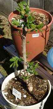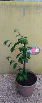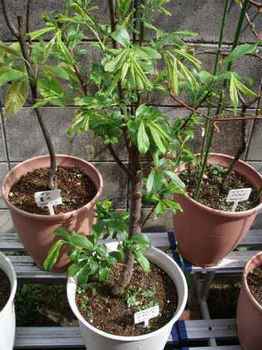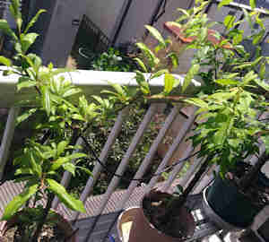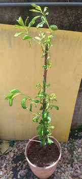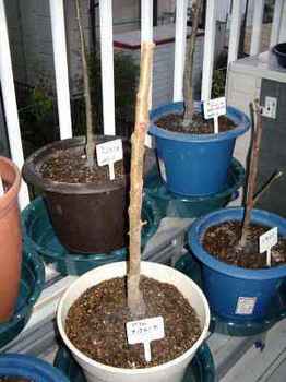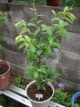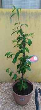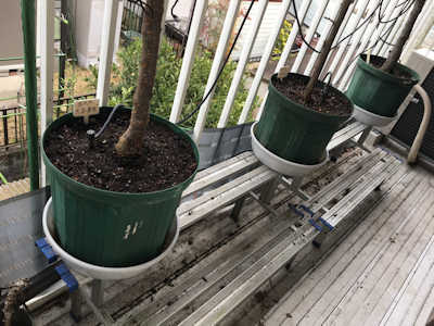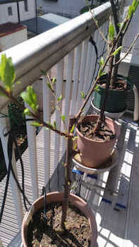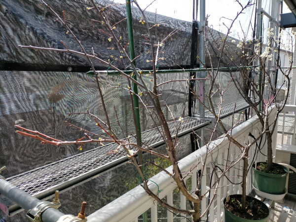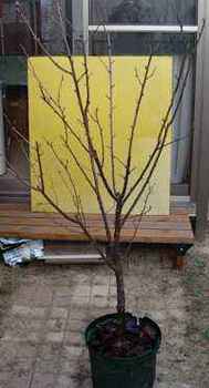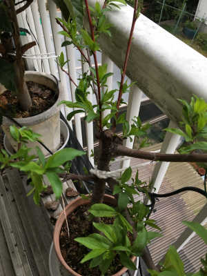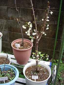 - スモモを7号鉢から9号鉢に植え替え、少し剪定した