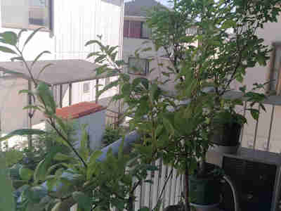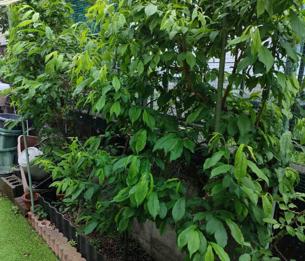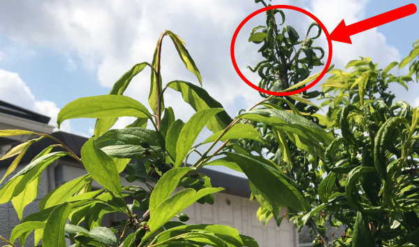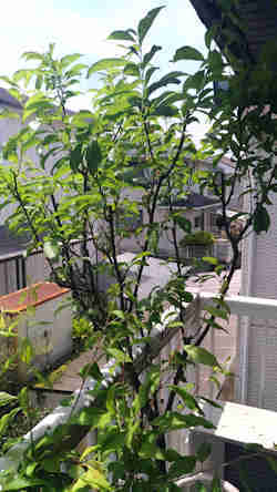 肥料をたっぷりやったのが原因かもしれないが、木は青々しています。