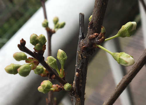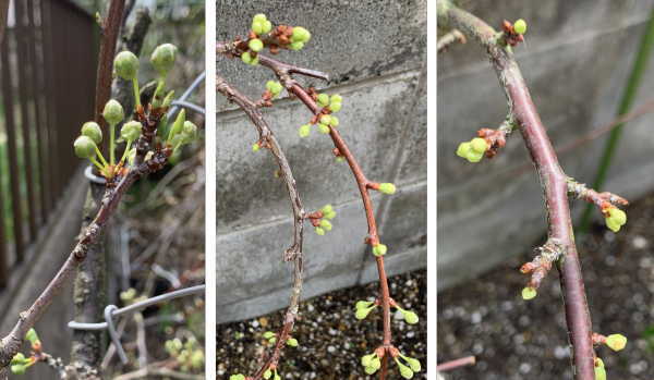 スモモ3種類共に小さな蕾が沢山ついていますが、「ソルダム」は少な目です。