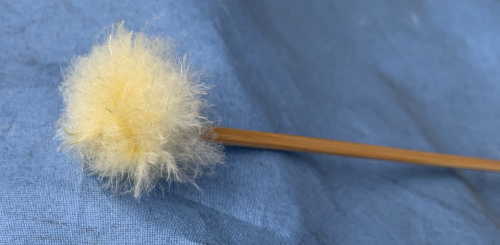 耳かきのフワフワを使って、花を交互に触り授粉作業を行いました。