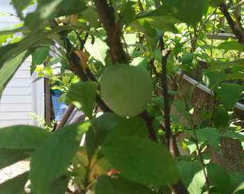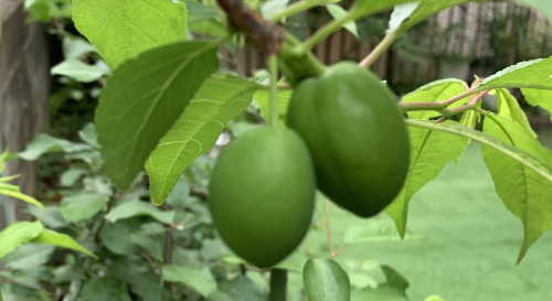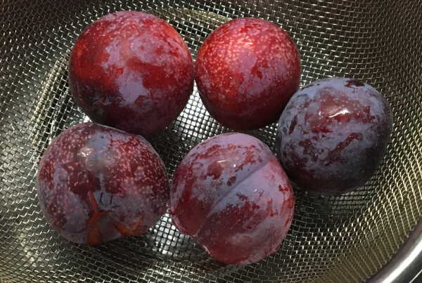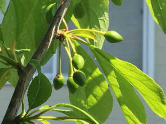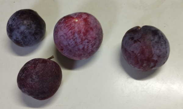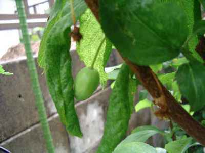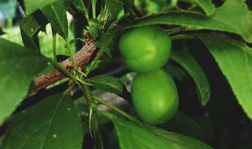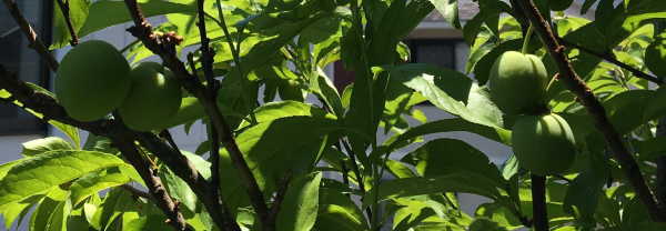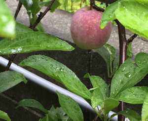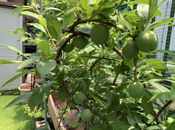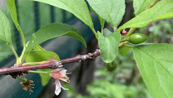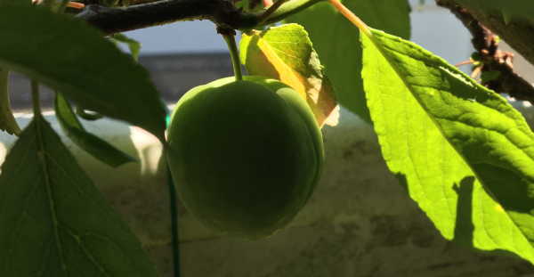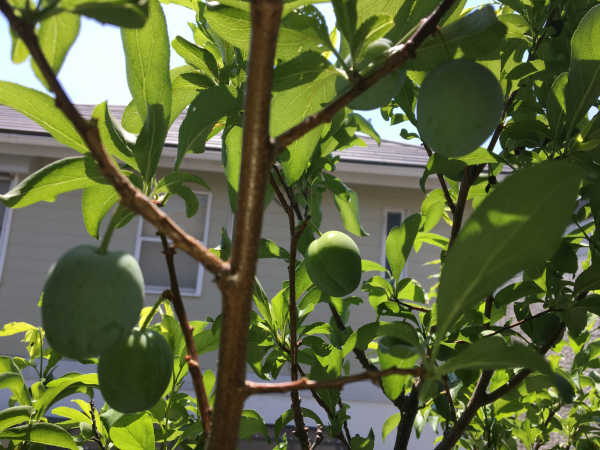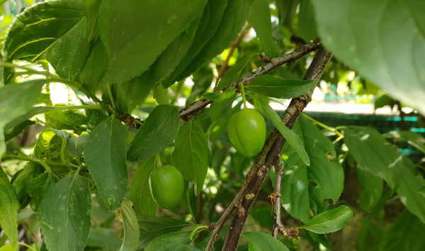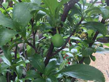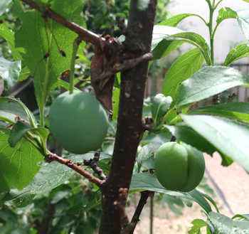 - 今年はスモモ「サンタローザ」に3個の実がついている