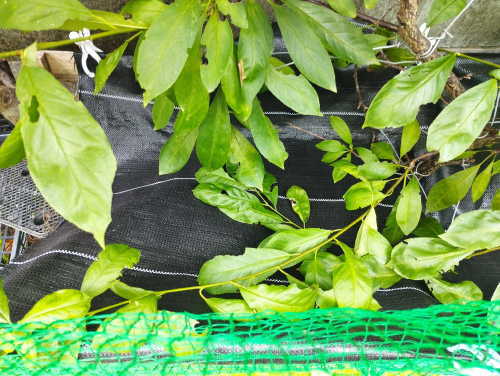 メッシュのネットの中に落ちた実を何回も収穫しましたが、甘みが無く美味しくないので、今日まで収穫せずにおいておきました。