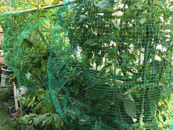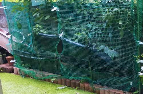鳥に見つかりずらいように、さらにネットで目隠ししてみました。