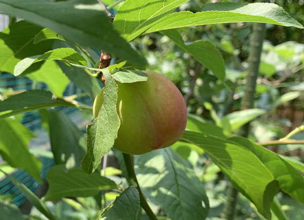 「大石早生」の実がネットの中に落ちていたので収穫。ネットで受け止めるので傷や汚れがつかず良いのだが、手間がかかる。