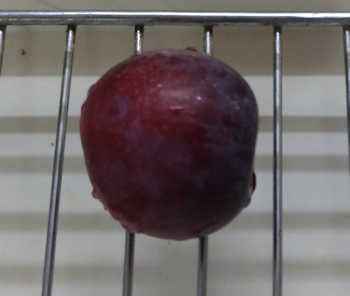 ネット取付時に、スモモ「大石早生」の実が落ちた