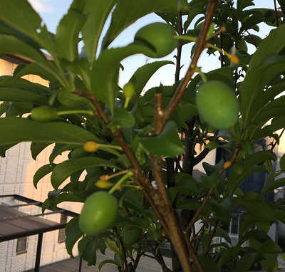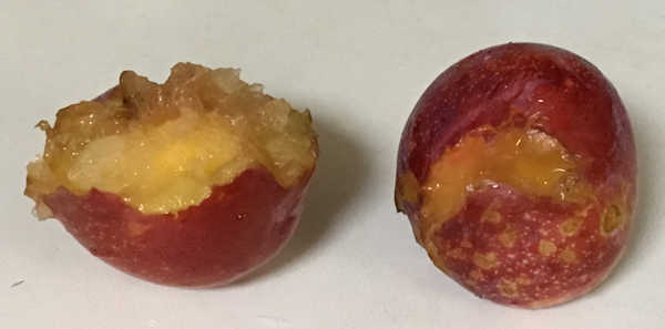 サンタローザの実は直径と長さが33~35mm位になっていました。