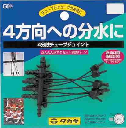この細いホースの先端にG244という4分岐(中央と右画像)を取り付けさらに分岐させる。