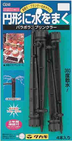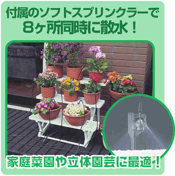 G248を30cmぐらいの高さにセットし、2つのプランター全体に水をまけるようにした。 |