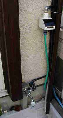 庭にある蛇口を分岐し、約1m程立ち上げて本体を取り付けた。