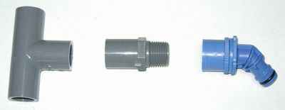 使用したパーツは外形18mm(内径13mm)の塩ビパイプ用。右端の青いカチットの先は360度回転するので状況に応じた取り付けができます。