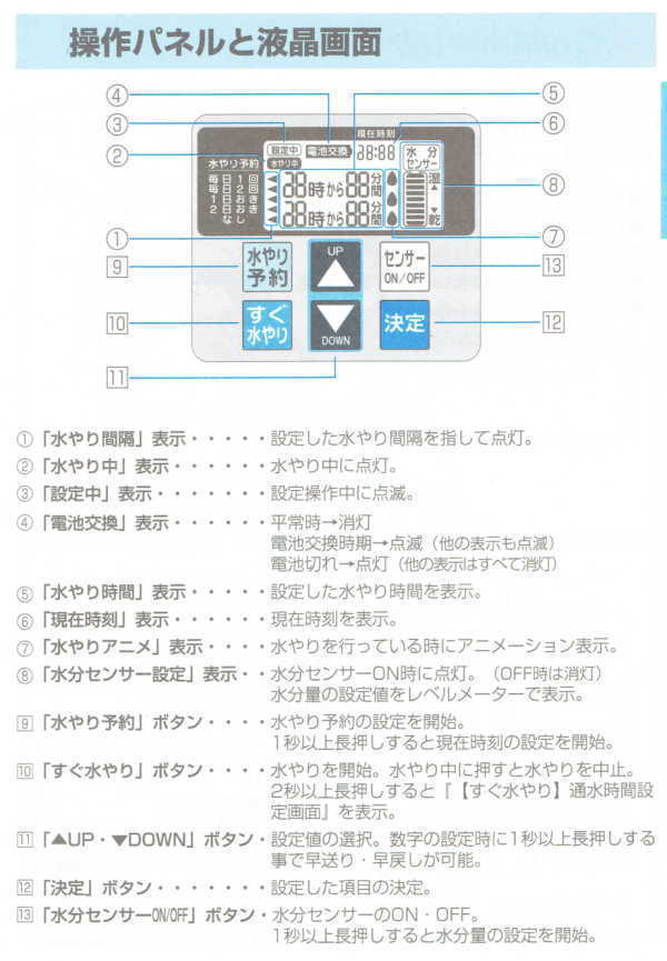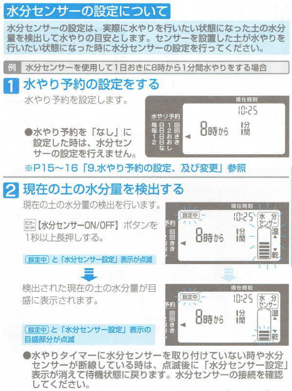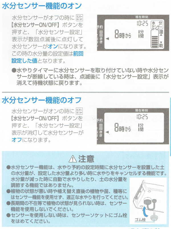 タカギ 水分センサー付 水やりタイマーセット G216の説明書から抜粋しました。