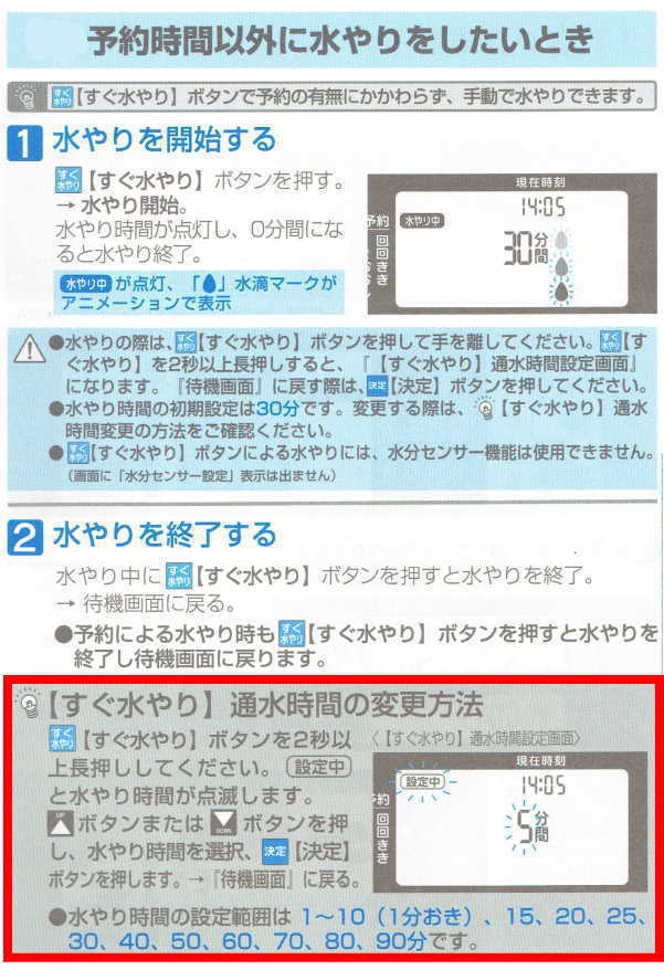 (すぐ水やり機能 と 時間の変更) - 水分センサー