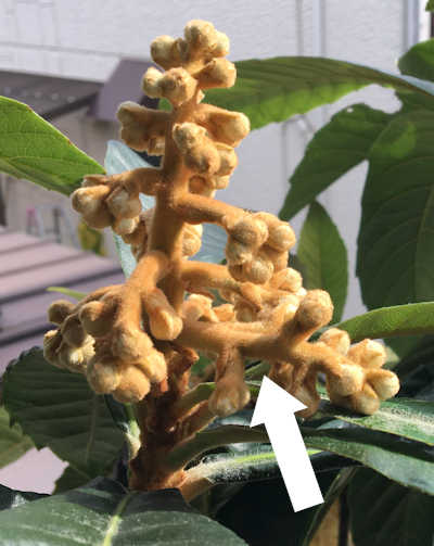 まず花芽は春から伸びた先端に6月頃から夏の間につき始めます。