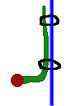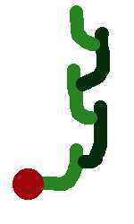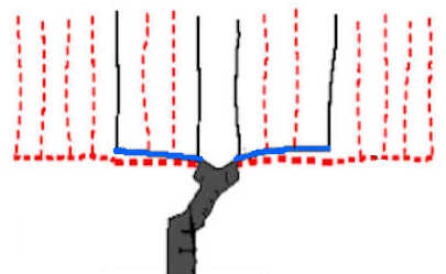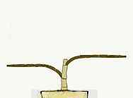 | 中央の画像は真上から見た時(茶=主枝、緑=新梢) 右の画像は真横から見た時(茶=主枝、緑=新梢、青=支柱) |