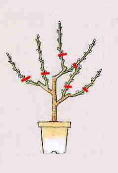 新梢の間隔は鉢植えの場合左右交互に10cm間隔を目安にすれば良いようです。