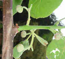 ブドウに似ていますが、ブドウは巻きひげの位置に着果するのに対し、キウイフルーツは節の定芽の位置に着果します。