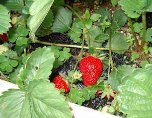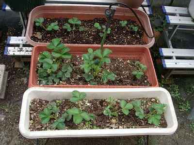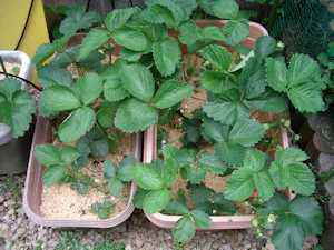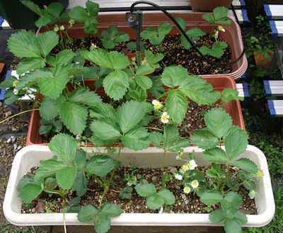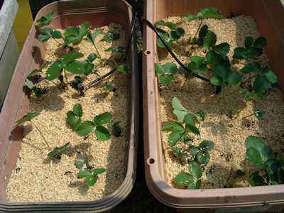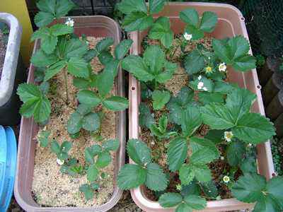 イチゴは、新たに植えつけ直したものと、去年の秋に整理したもの/p>
