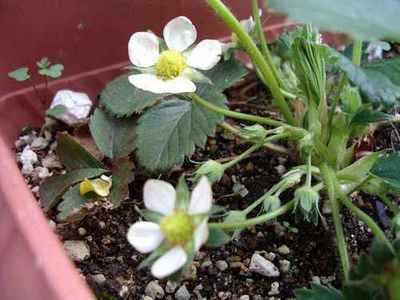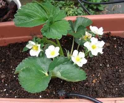イチゴの花が咲き始めた。つぼみもいっぱいある。