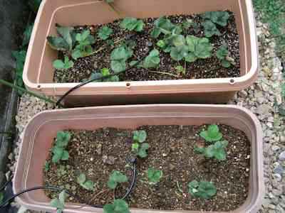 - 道の駅で買った「甘くて大きなイチゴ」の苗を植えつけた。