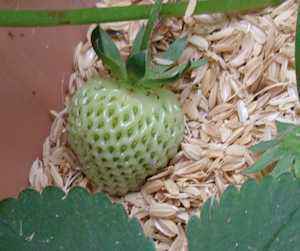 - イチゴにワラの代わりとして稲の籾殻を表面に敷き詰めてみた