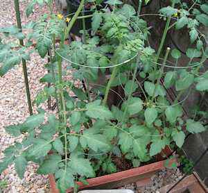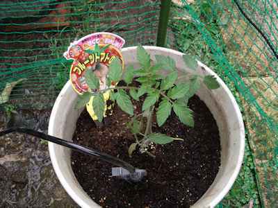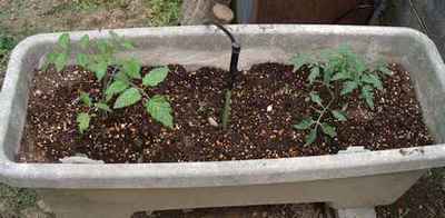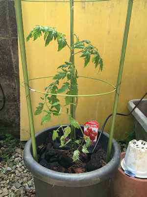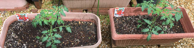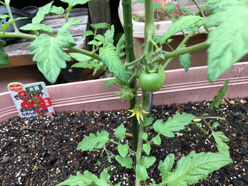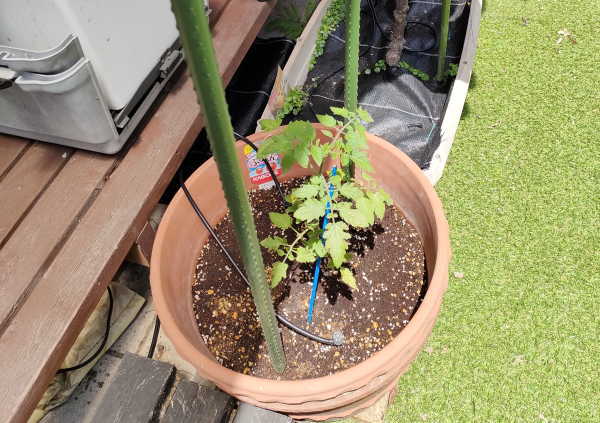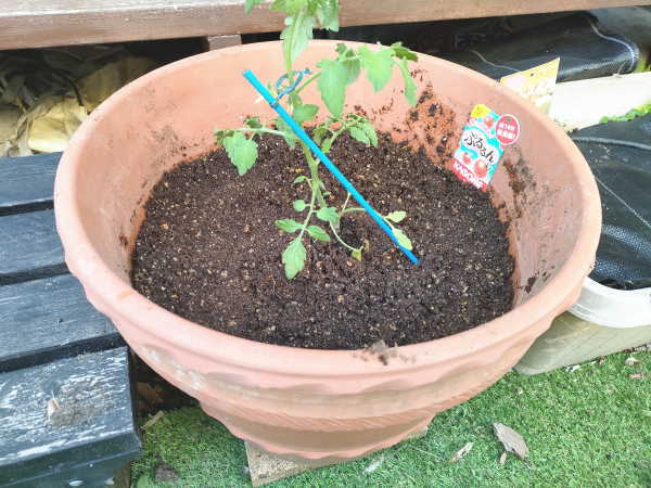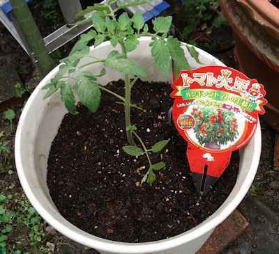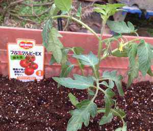 トマトはいつも地植えにしていたが、連作に向かないということなのでプランタに植えつけた。