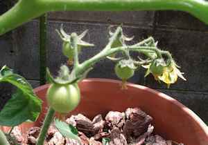 - ミニトマトの茎と葉が茶色くなって萎れている