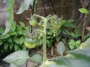 花を軽く指先ではじくと説明していましたのでその通りに行ったせいかどうかわかりませんが、大玉も中玉も第1花房に実をつけています。